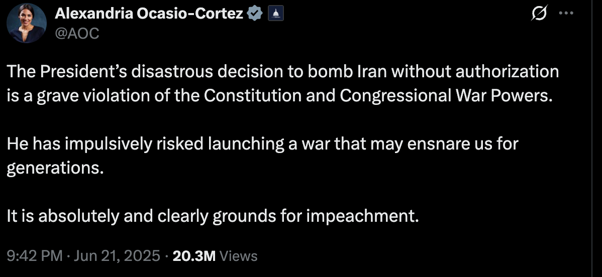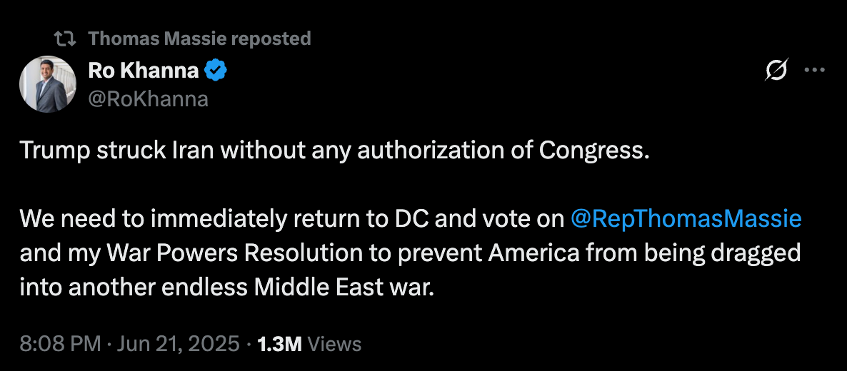 Thomas Massie and Ro Khanna are calling it unconstitutional, RTing and working together. BUT — they are FAILING to talk about IMPEACHMENT. Which is absurd. The constitutional remedy for a high crime like this by the president is impeachment.